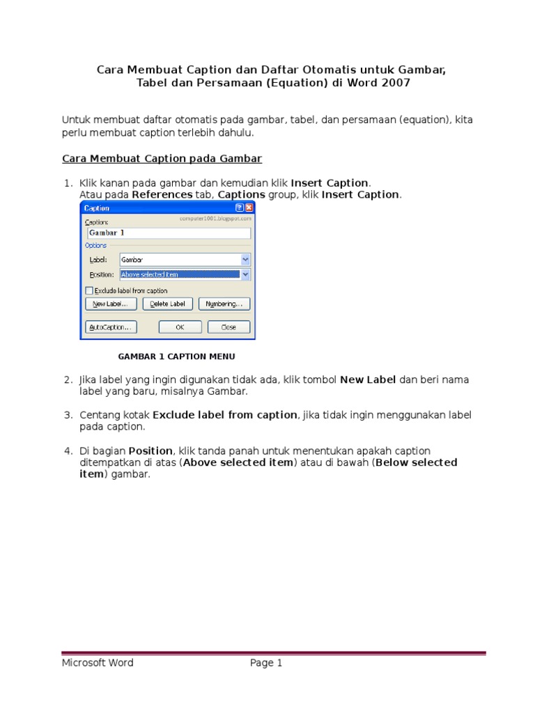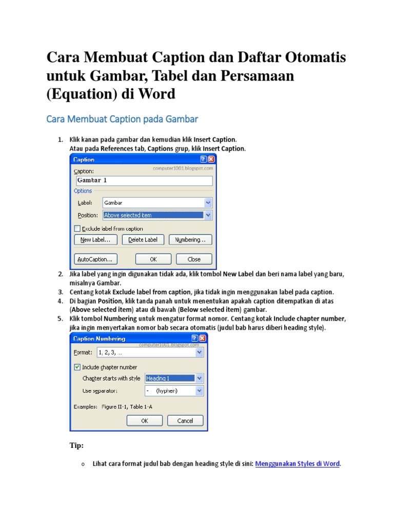 Cara Membuat Caption dan Daftar Otomatis untuk Gambar, Tabel dan Per… - PDF Free Download