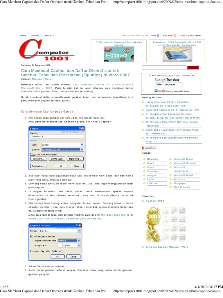 Cara Membuat Caption Dan Daftar Otomatis Untuk Gambar, Tabel Dan Persamaan Equation) Di Word 2007 _ Computer 1001