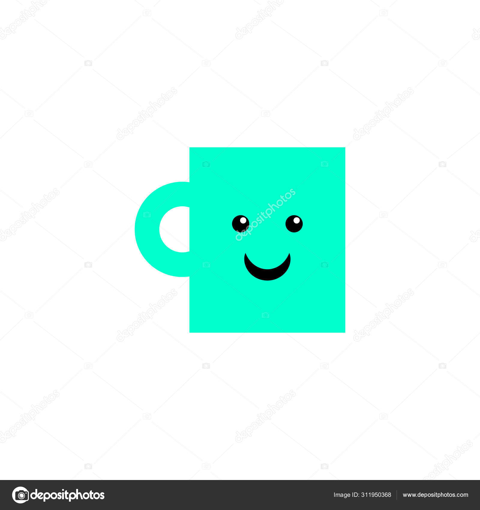 Cartoon cheerful cup for print design. Coffee mug with smile. Happy holiday, russia. Vector illustration template design. Cartoon illustration cheerful cup with smile. Vector card. Morning coffee. Stock Vector © julimurch #311950368