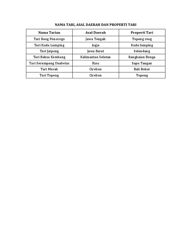 Daftar Nama Tarian Dan Propertinya