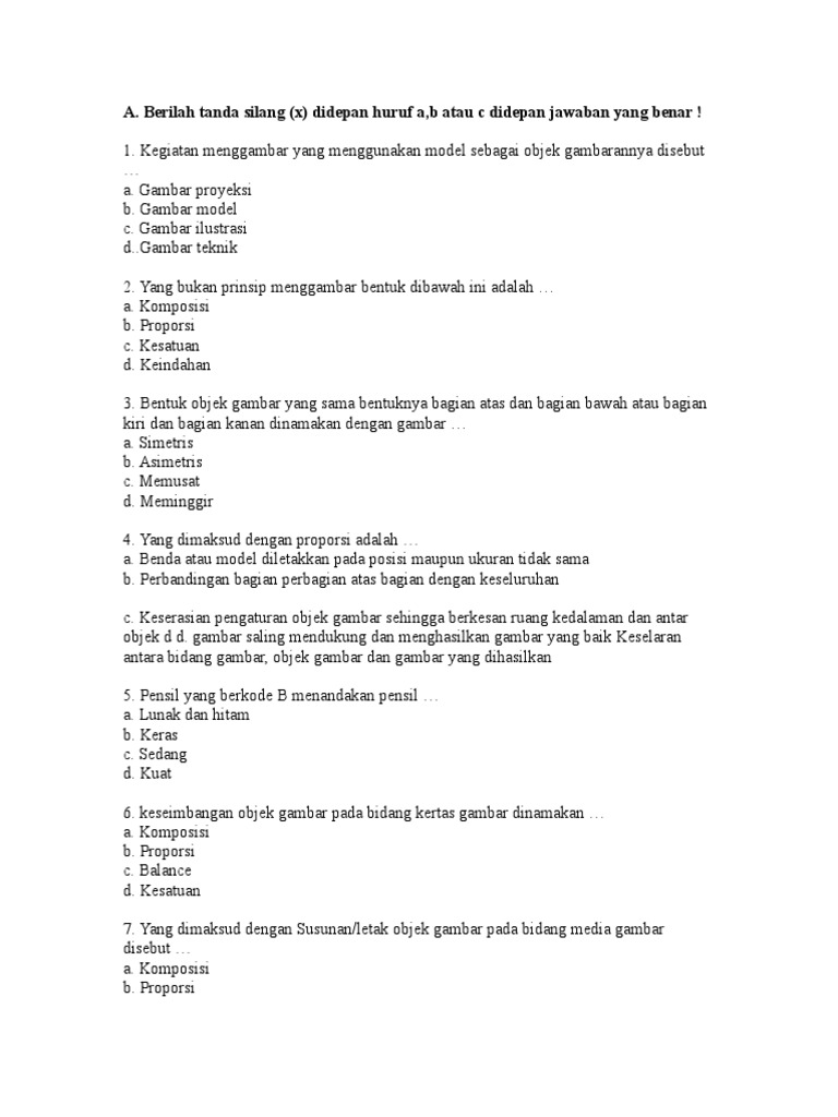 A. Berilah tanda silang (x) didepan huruf a,b atau c didepan jawaban yang benar !