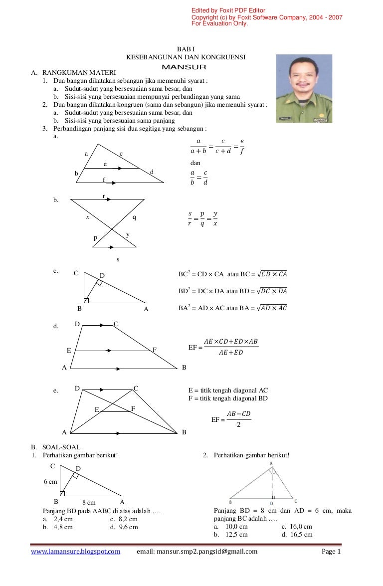 PDF) Latihan Soal Kelas IX: Kesebangunan dan Kekongruenan | fauzan asyidik - Academia.edu