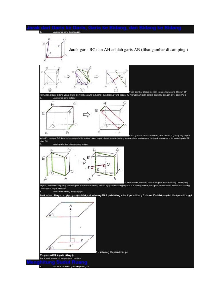 Geometri 2 Mendeskripsikan konsep jarak dan sudut antar titik, garis dan bidang melalui demonstrasi - [PDF Document]