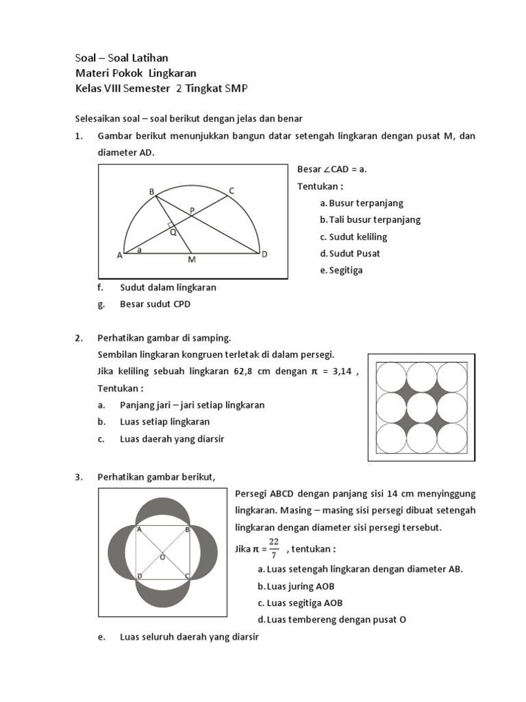 Soal Uji Kompetensi Materi Lingkaran Kelas VIII | Mikirbae.com