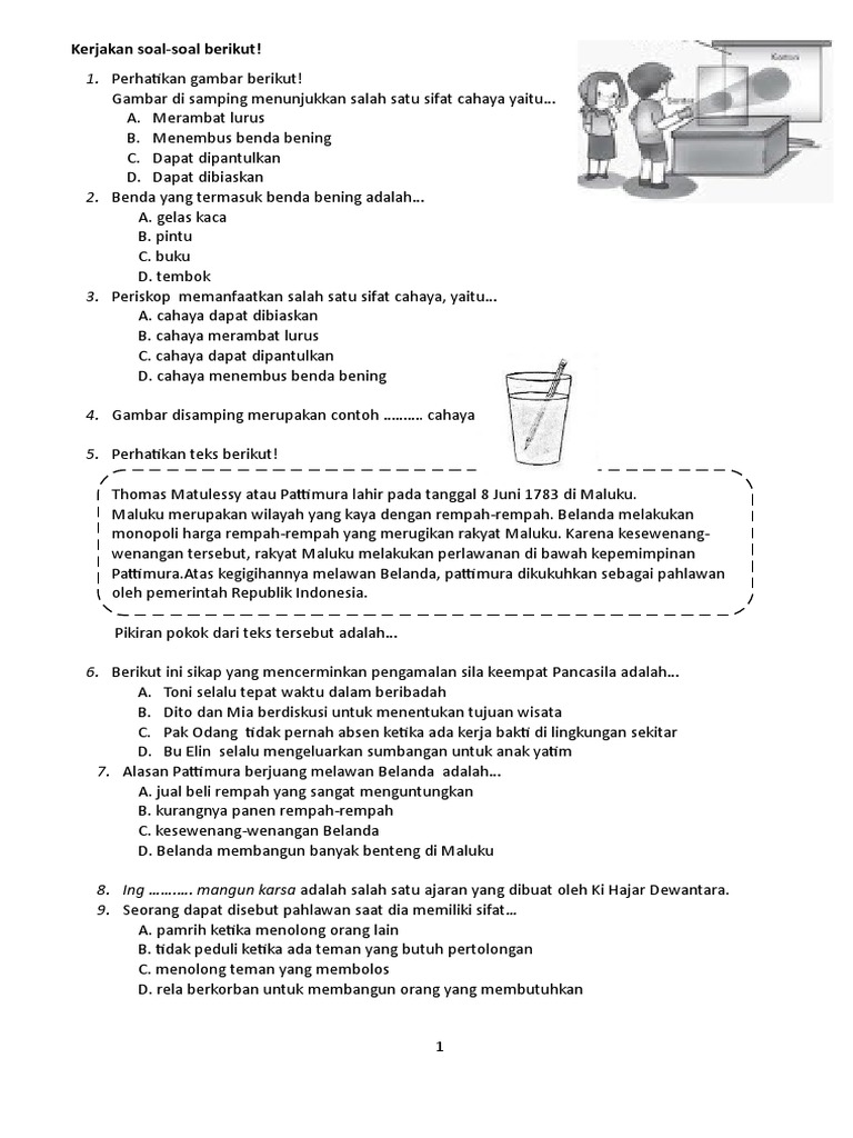 Soal Kelas 5 Tema 1 Subtema 2 dan Kunci Jawaban | OSNIPA