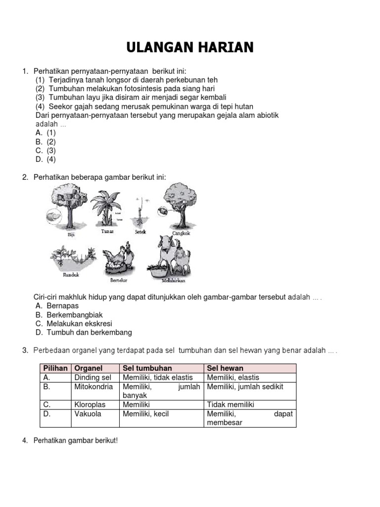 Soal dan jawaban sel hewan dan tumbuhan (Biologi) | Usaha321.net