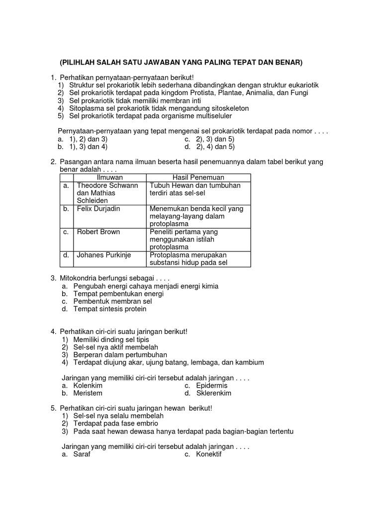 Gudang Soal Biologi dan Kunci Jawabannya - sel - Wattpad