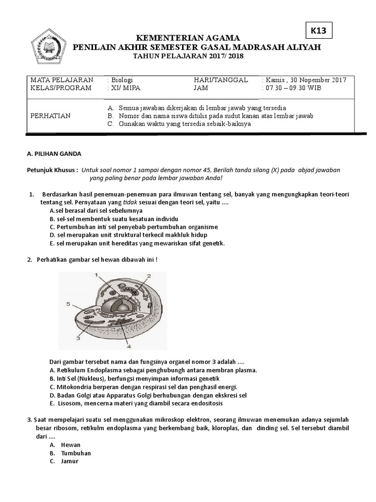 NASKAH SOAL BIOLOGI KL XI SMT GASAL K13 OK