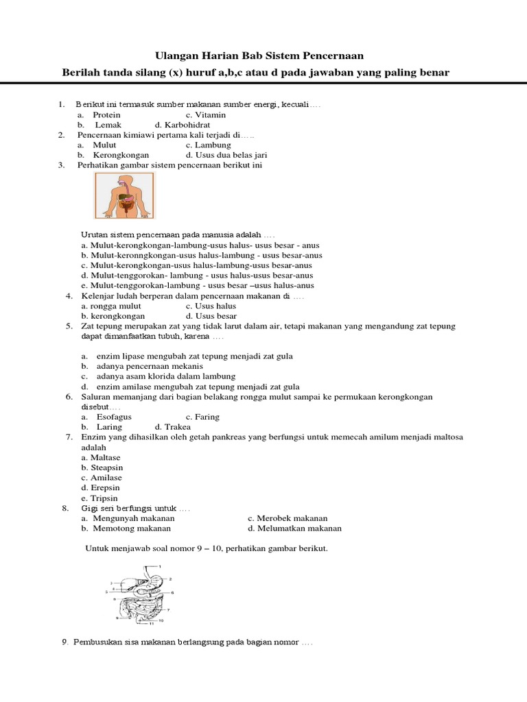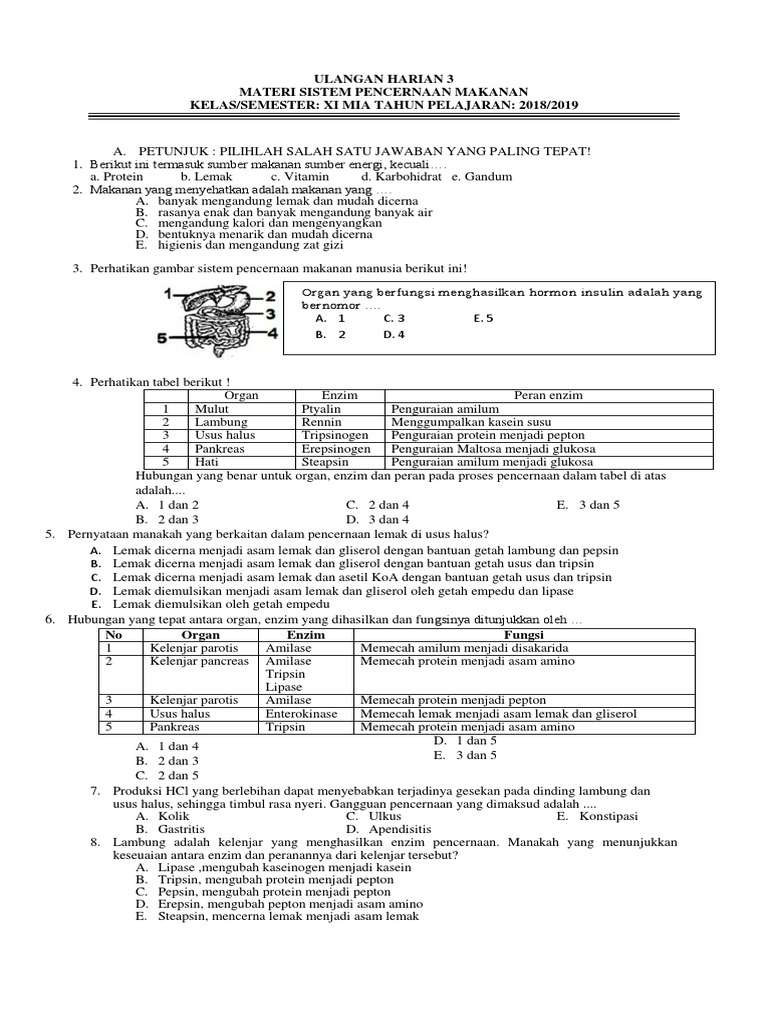 Latihan Soal Biologi Kelas 11 Bab Sistem Pencernaan Makanan Beserta Kunci Jawaban - Science’s Home