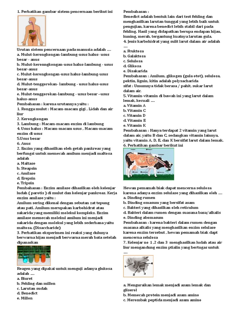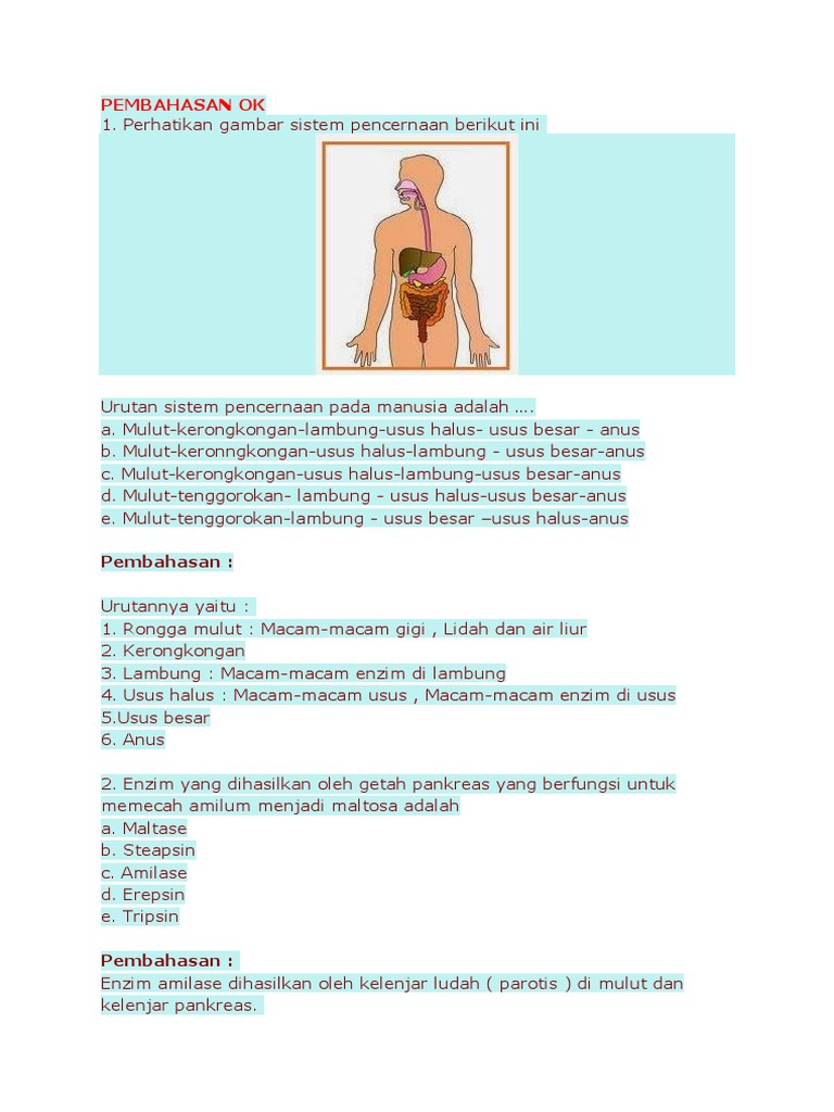 Soal dan pembahasan sistem pencernaan manusia (Biologi) | Usaha321.net