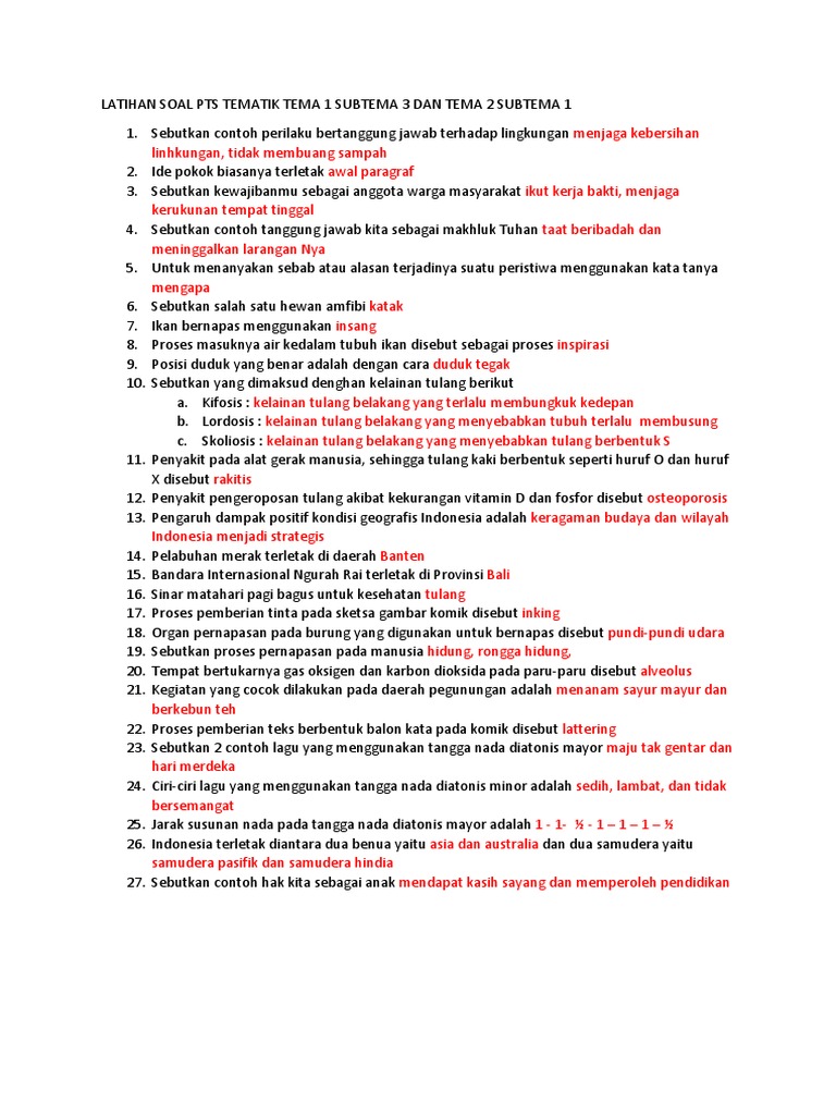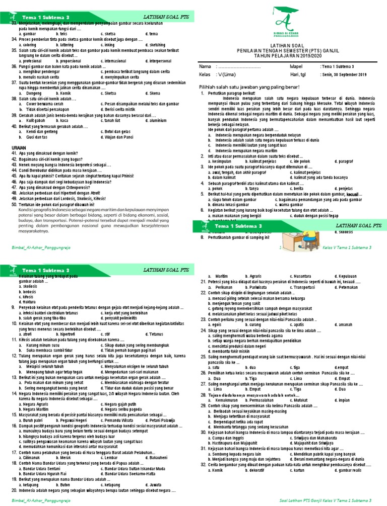 Latihan Soal Pts: Tema 1 Subtema 3