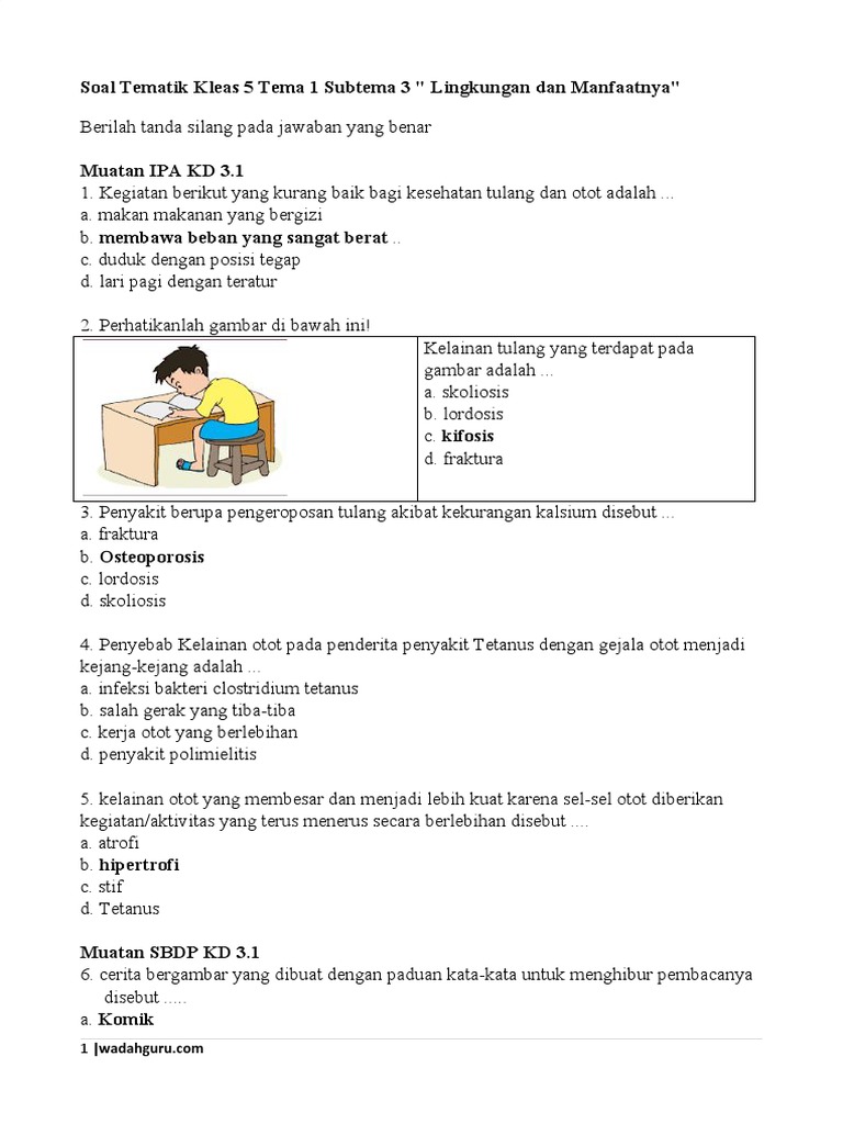 Soal Tematik Kleas 5 Tema 1 Subtema 3 " Lingkungan dan Manfaatnya”