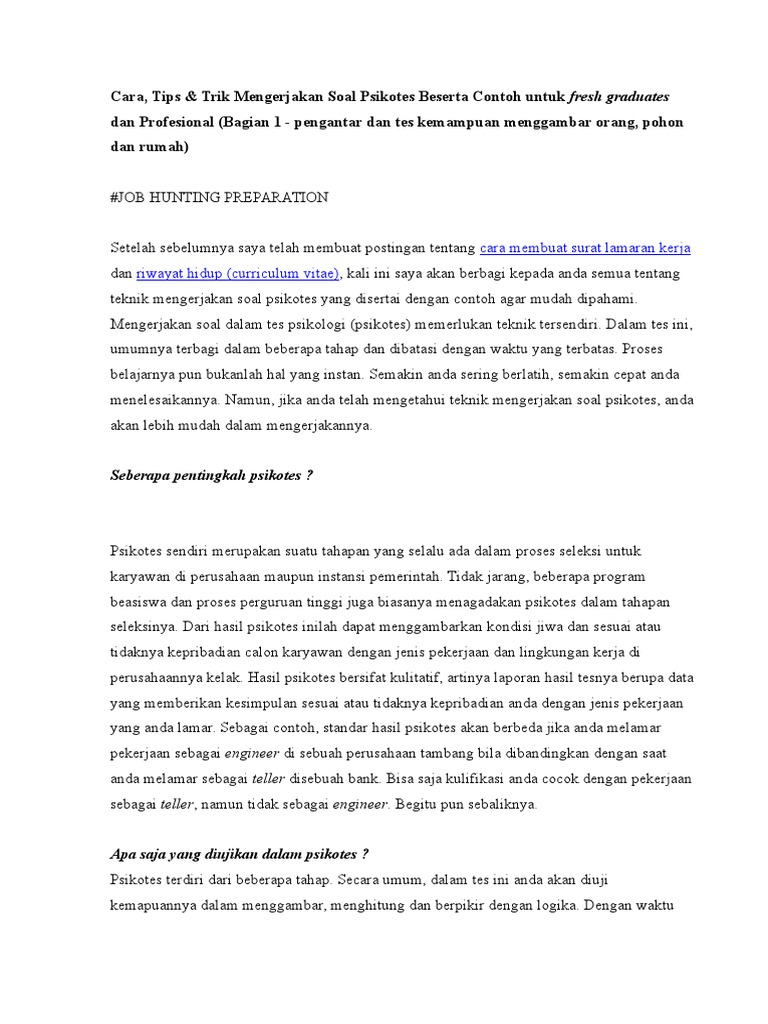 Cara Jitu Lolos Psikotes untuk Seleksi Kerja - .kemapuannya dalam menggambar, menghitung dan berpikir - [PDF Document]
