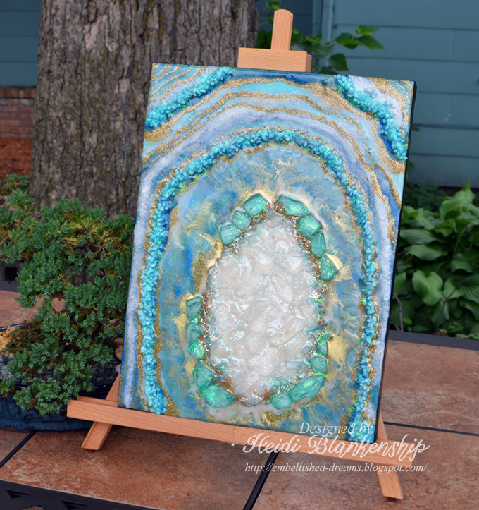Embellished Dreams: Blue Paradise Geode and Resin Canvas with Art Resin