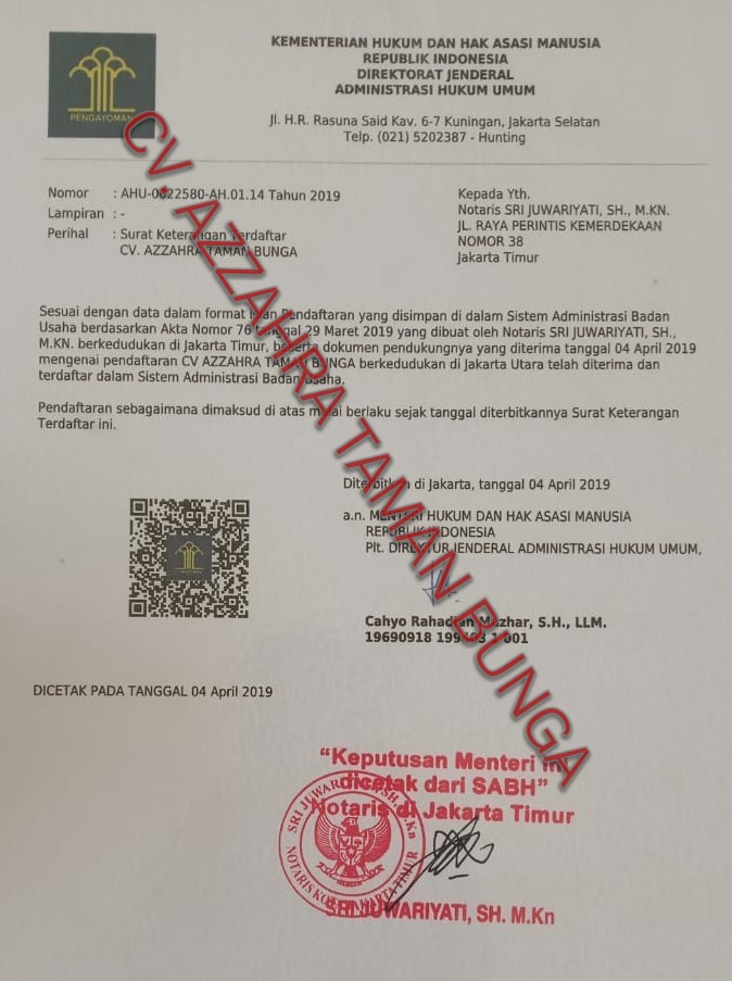 CV. AZZAHRA TAMAN BUNGA: 2019