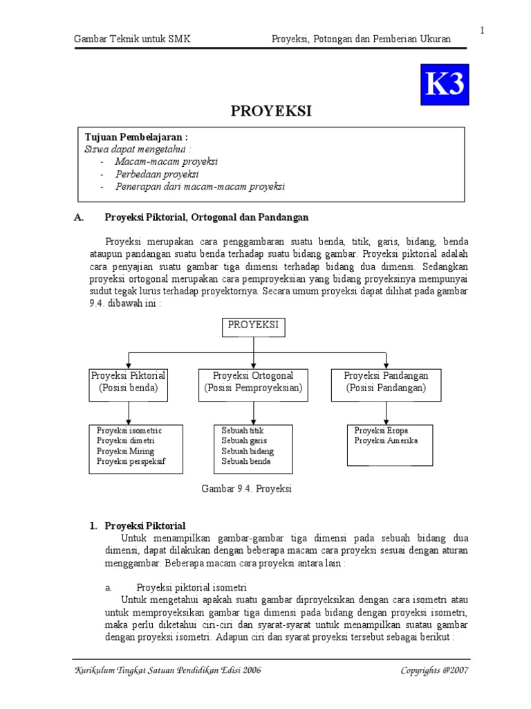 54d33e96d8985 (1).doc - Gambar Teknik untuk SMK Proyeksi Potongan dan Pemberian Ukuran K3 PROYEKSI Tujuan Pembelajaran Siswa dapat mengetahui | Course Hero