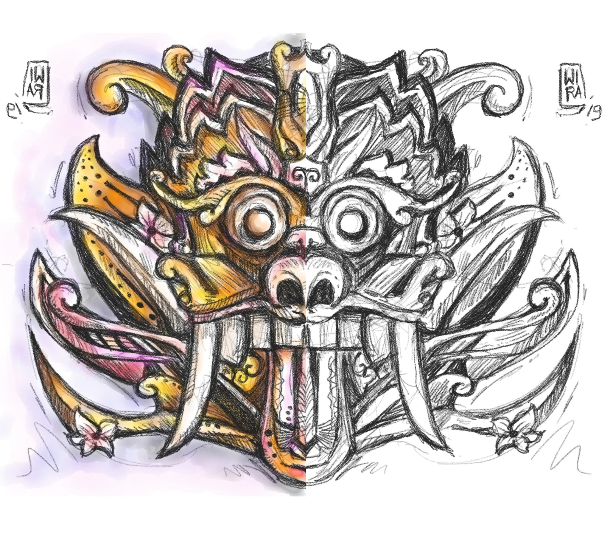 barong rangda sketch sketsa doodling | jonkopijon