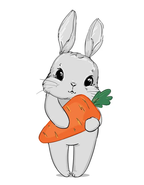 Kelinci Abu Abu Lucu Memegang Wortel Terisolasi Pada Latar Belakang — Stok Vektor © AlsouSh #401842644