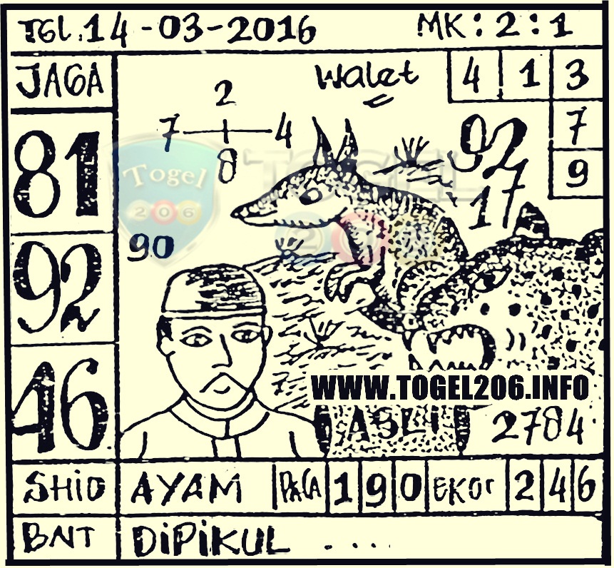 dunia206: Syair & Prediksi Togel Singapore, 14 Maret 2016