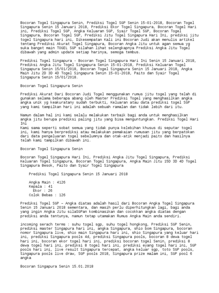 Bocoran Togel Singapura Senin 15 Januari 2018