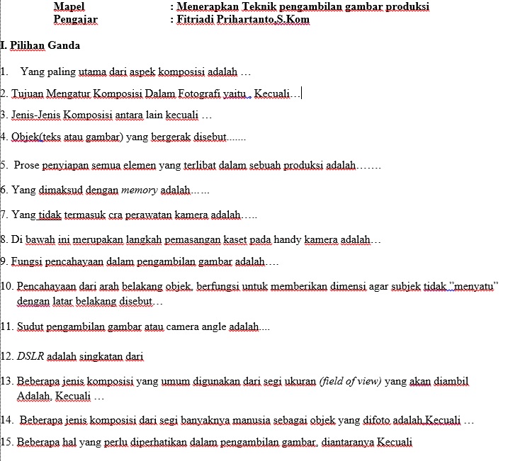 Soal Menerapkan Teknik Pengambilan Gambar Produksi - [DOC Document]