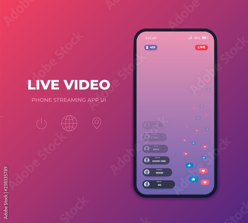 Smartphone streaming app ui. Vector template live video broadcast, play multimedia live stream - Buy this stock vector and explore similar vectors at Adobe Stock | Adobe Stock