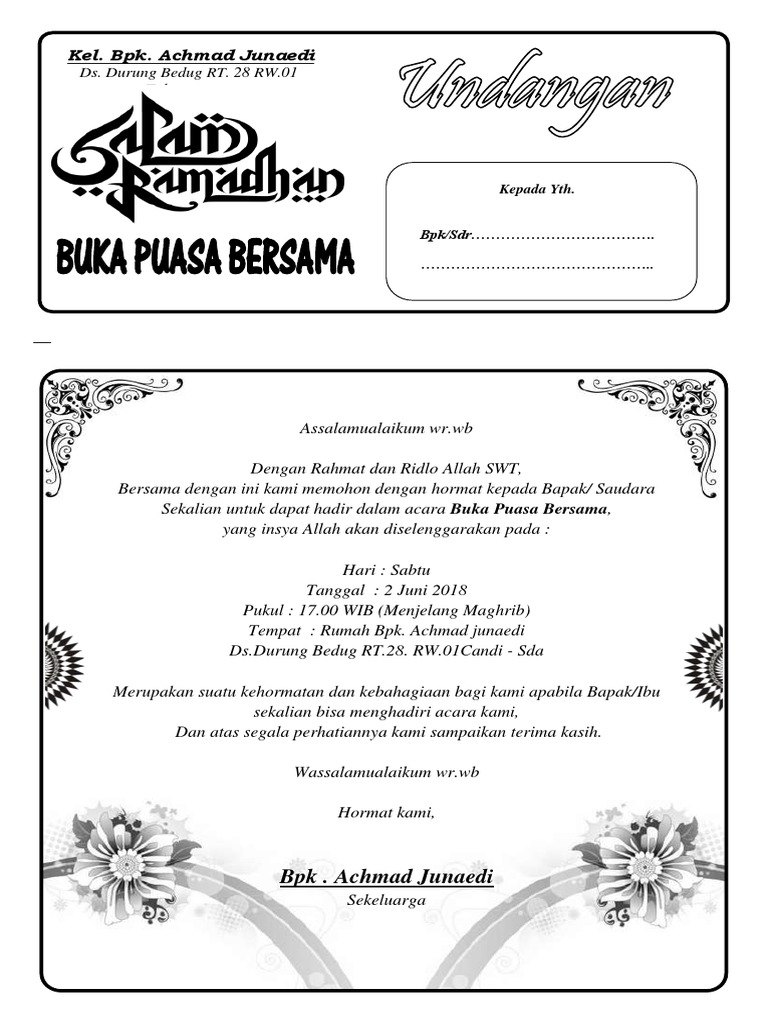Contoh Undangan Reuni Buka Bersama Format Doc - TRIPROFIK.COM