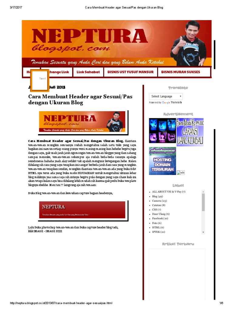 NEPTURA: Cara Membuat Header agar Sesuai/Pas dengan Ukuran Blog