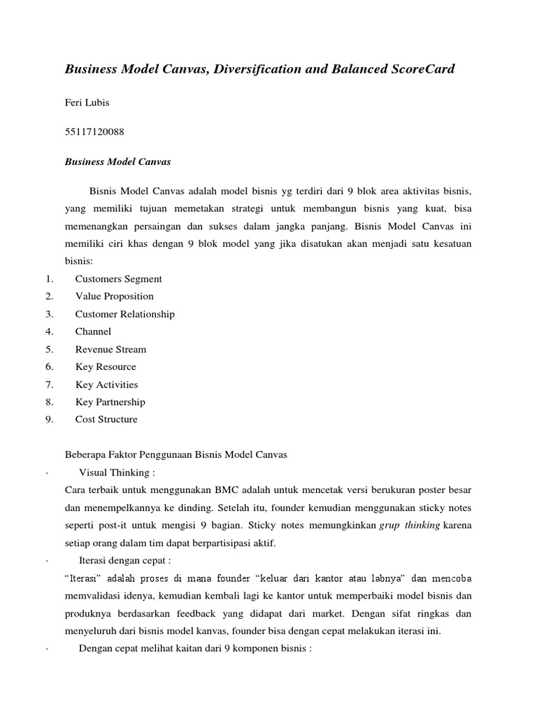 9,SM,Feri Lubis, Hapzi Ali,Business Model Canvas, Diversification and Balanced ScoreCard, Universitas Mercubuana,2018