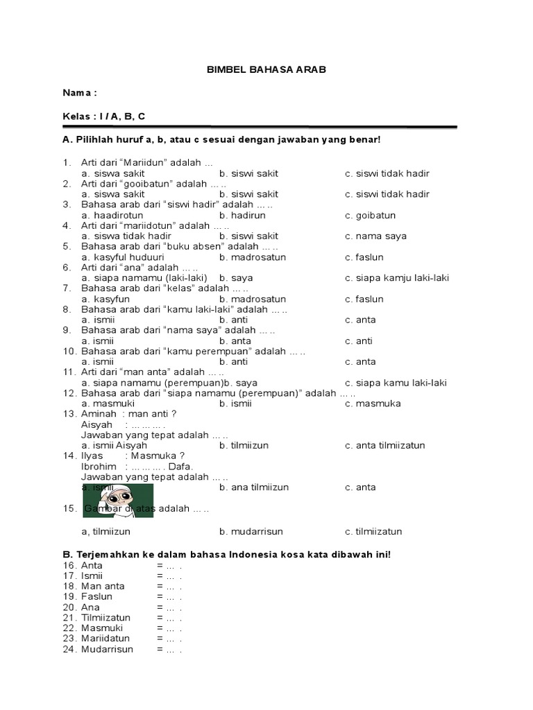 Bahasa Arab MATEMATIKADi Jawab Ya Soal Ada Di Gambar - Brainly.co.id
