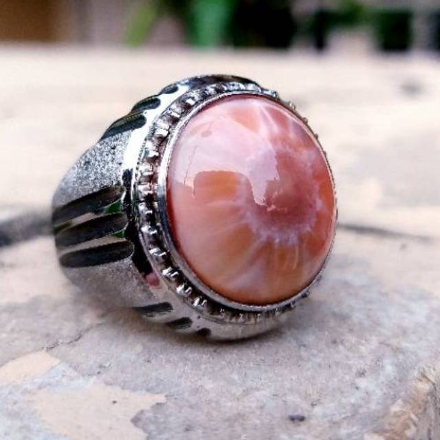 Cincin batu tumpang bulu hanoman super HQ natural thompsonite bukn giok bacan kecubung merah delima | Shopee Indonesia