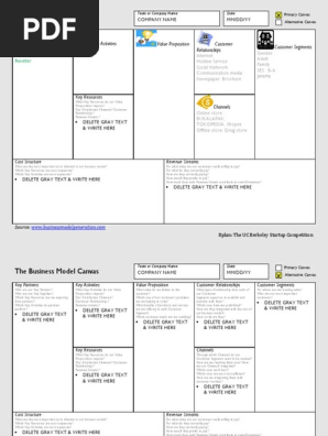 The Business Model Canvas: Mm/Dd/Yy Company Name | Business Model | Business Economics