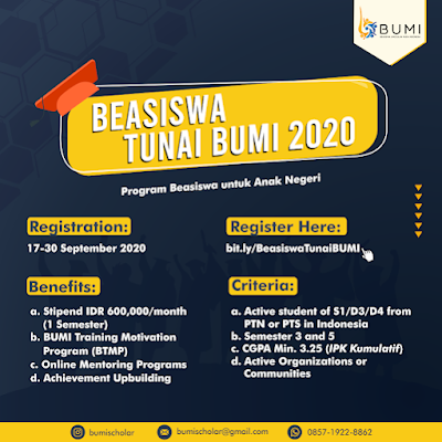 Beasiswa Tunai Bumi Telah Dibuka, Catat Syarat dan Ketentuannya! - Pojokata