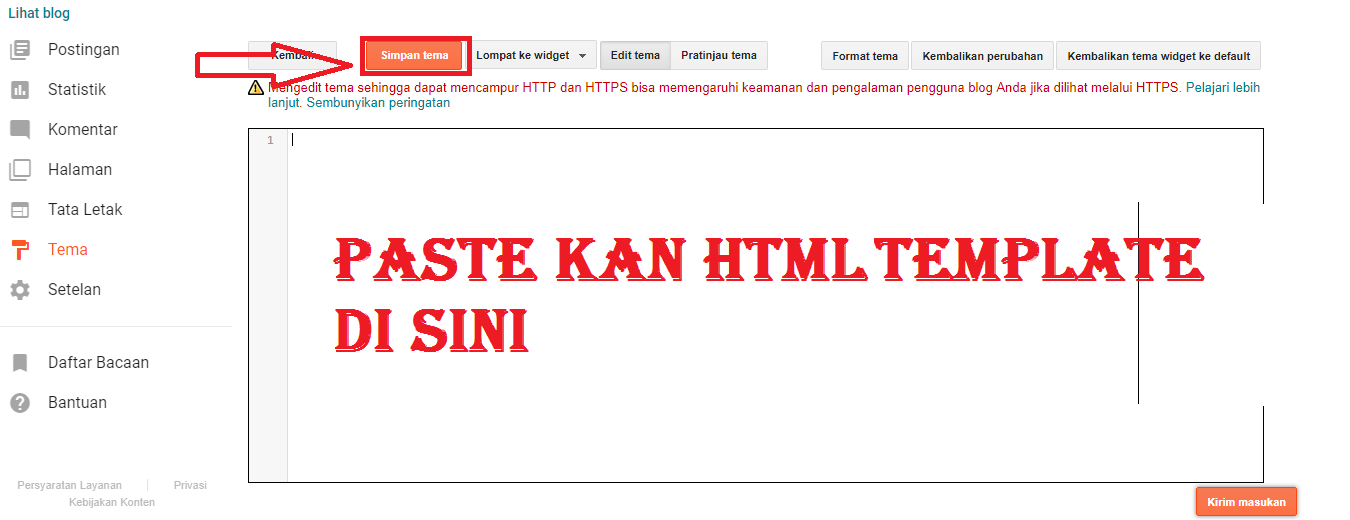Cara Mengganti Template Blog pada Mode Edit HTML