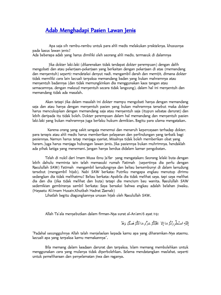 Adab Menghadapi Pasien Lawan Jenis