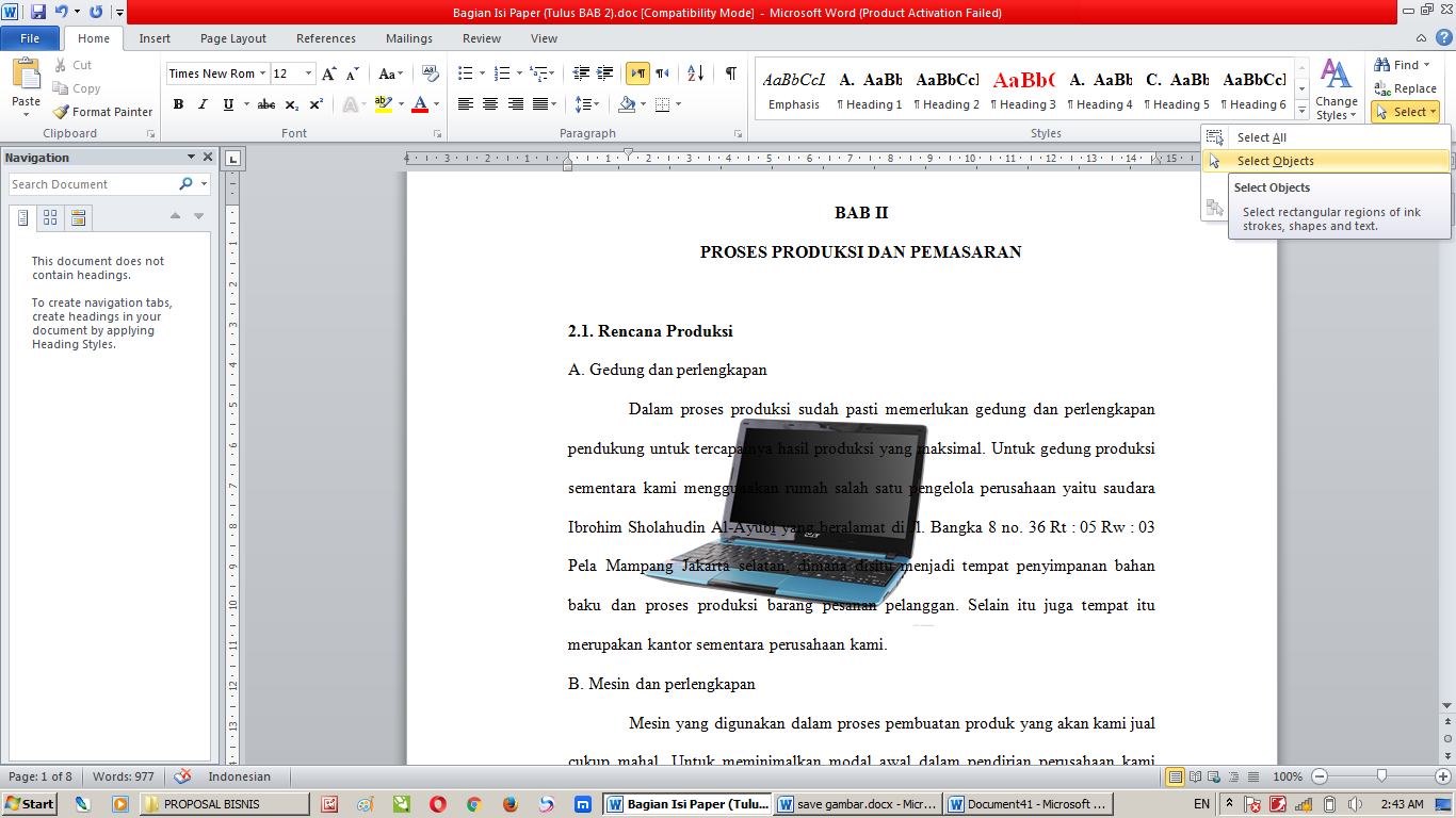 Cara Menyeleksi dan Memindahkan Gambar yang tertutup teks di MS WORD