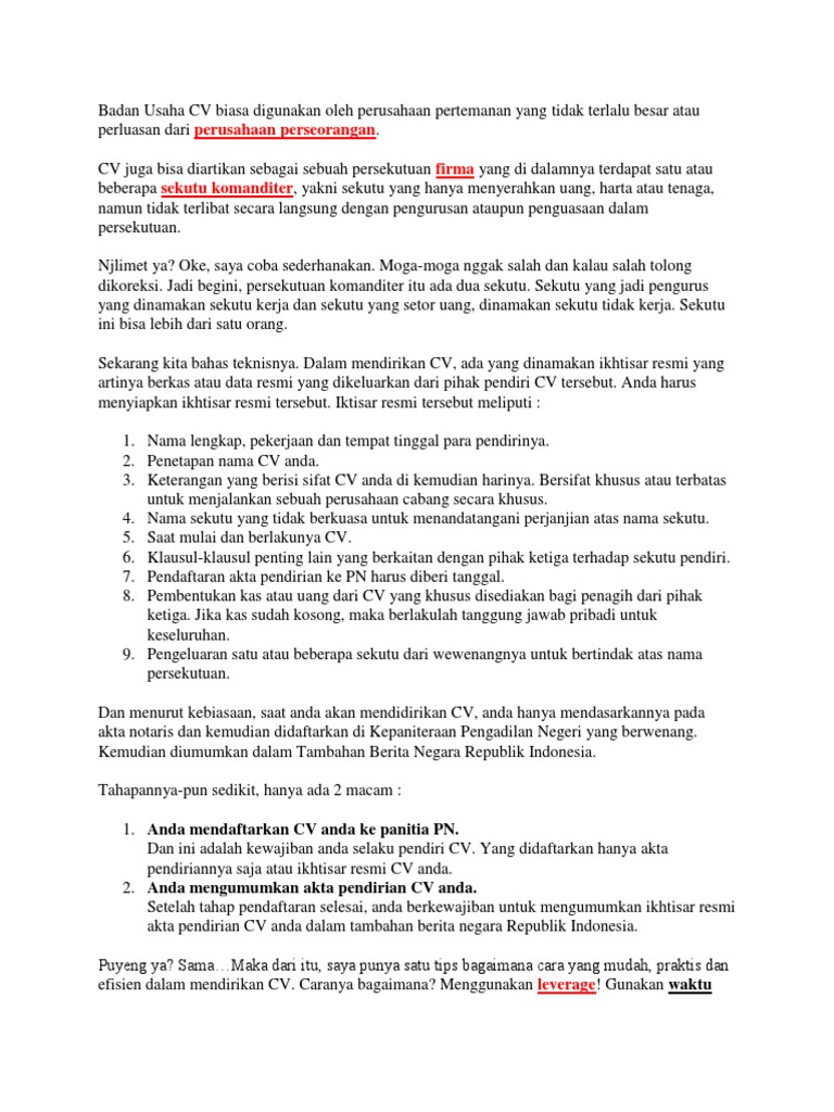 Panduan mendirikan CV paling lengkap - Updated 2020