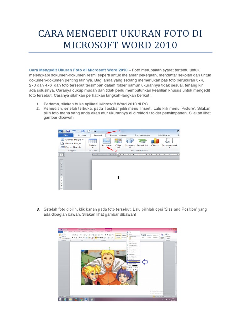 Cara Mengedit Ukuran Foto Di Microsoft Word 2010