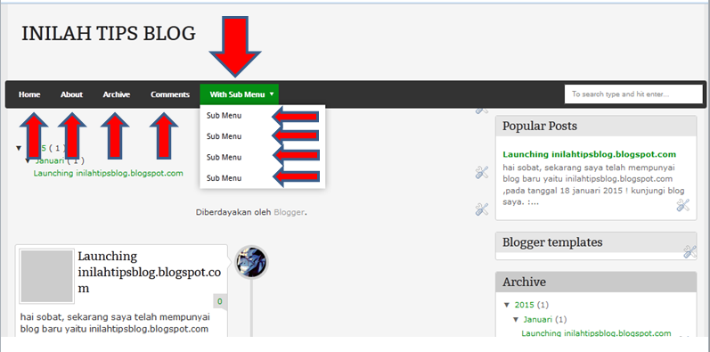 Cara mengedit menu/sub menu template blog hasil download | My Blog