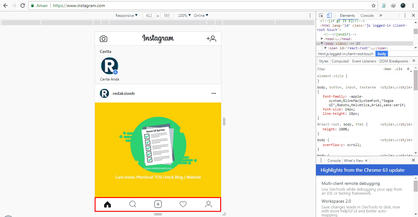 2 Cara Upload Foto di Instagram Lewat Browser Google Chrome