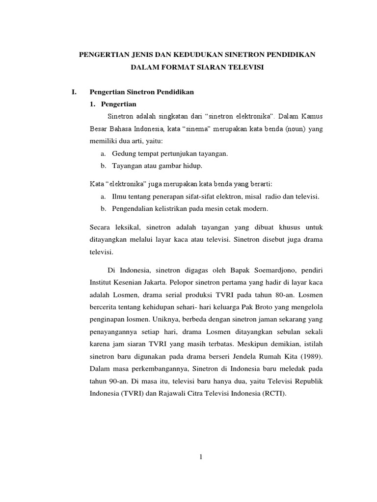 Pengertian Jenis Dan Kedudukan Sinetron Pendidikan Dalam Format Siaran Televisi