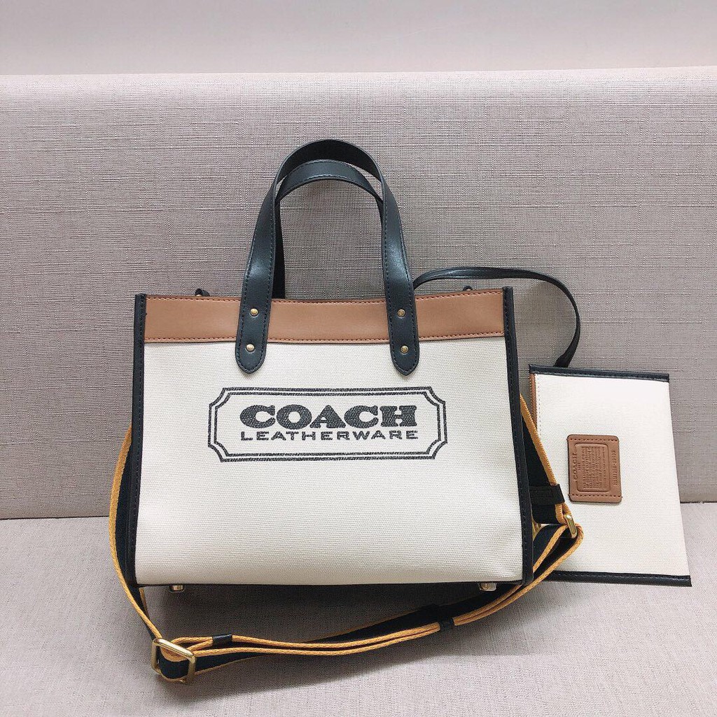Coach Canvas Mala Boy Female Bag Shopping Bag Canvas Tote Pack Logo | Shopee Singapore