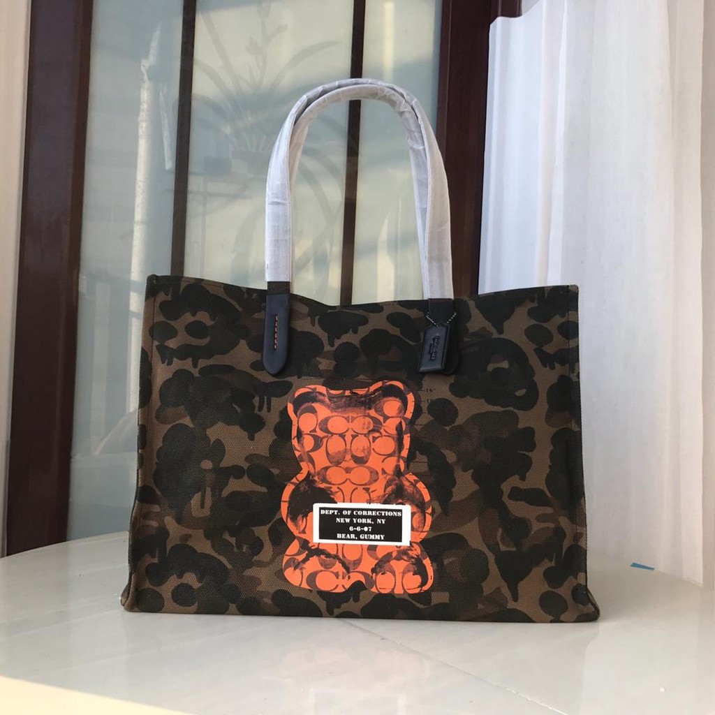 COACH Tote Bag Reversible City Shoulder Bag Signature Canvas with Vandal Gummy Bear | Shopee Singapore