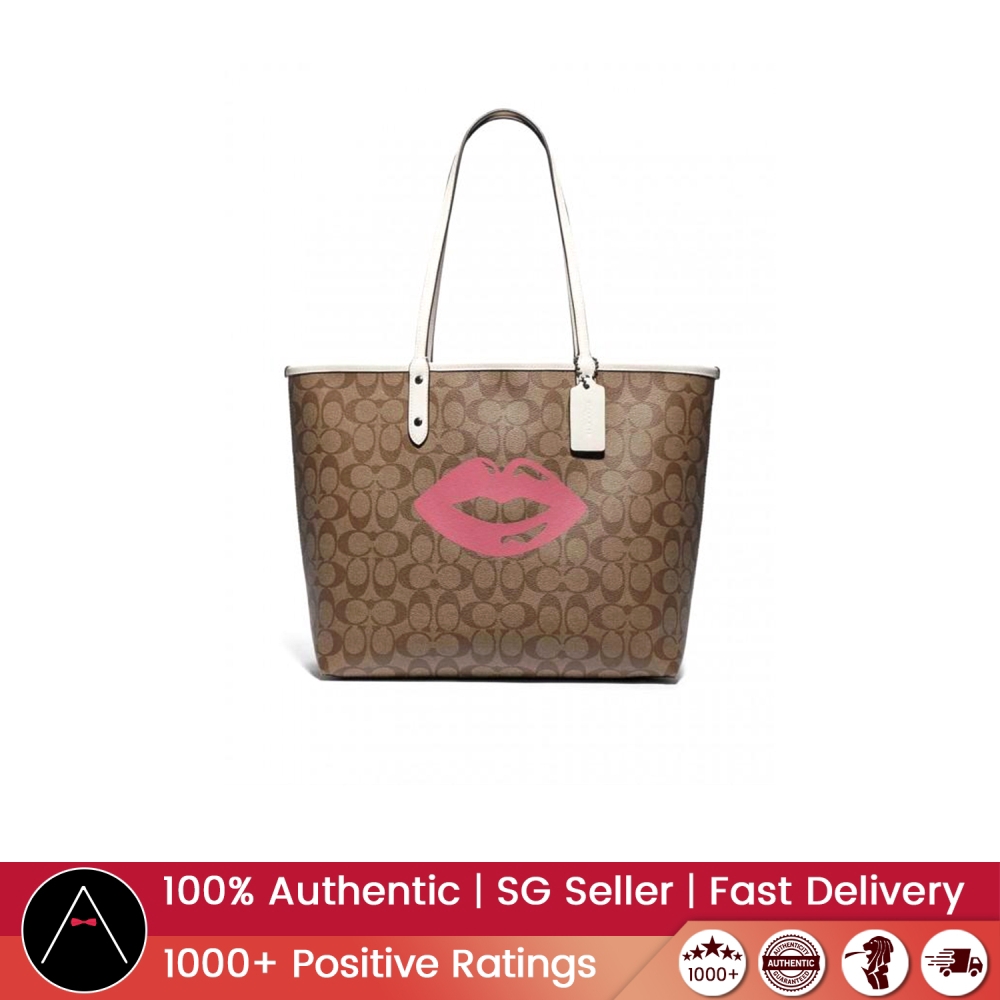 Authentic Coach F78257 Reversible City Tote in Signature Canvas with Lips Motif with Gift Receipt | Shopee Singapore