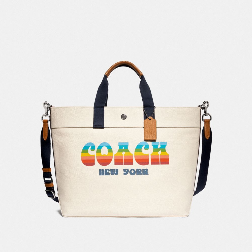 COACH F72848 - EXTRA LARGE TOTE WITH RAINBOW COACH ANIMATION - CHALK/SILVER | COACH TRENDING-NOW