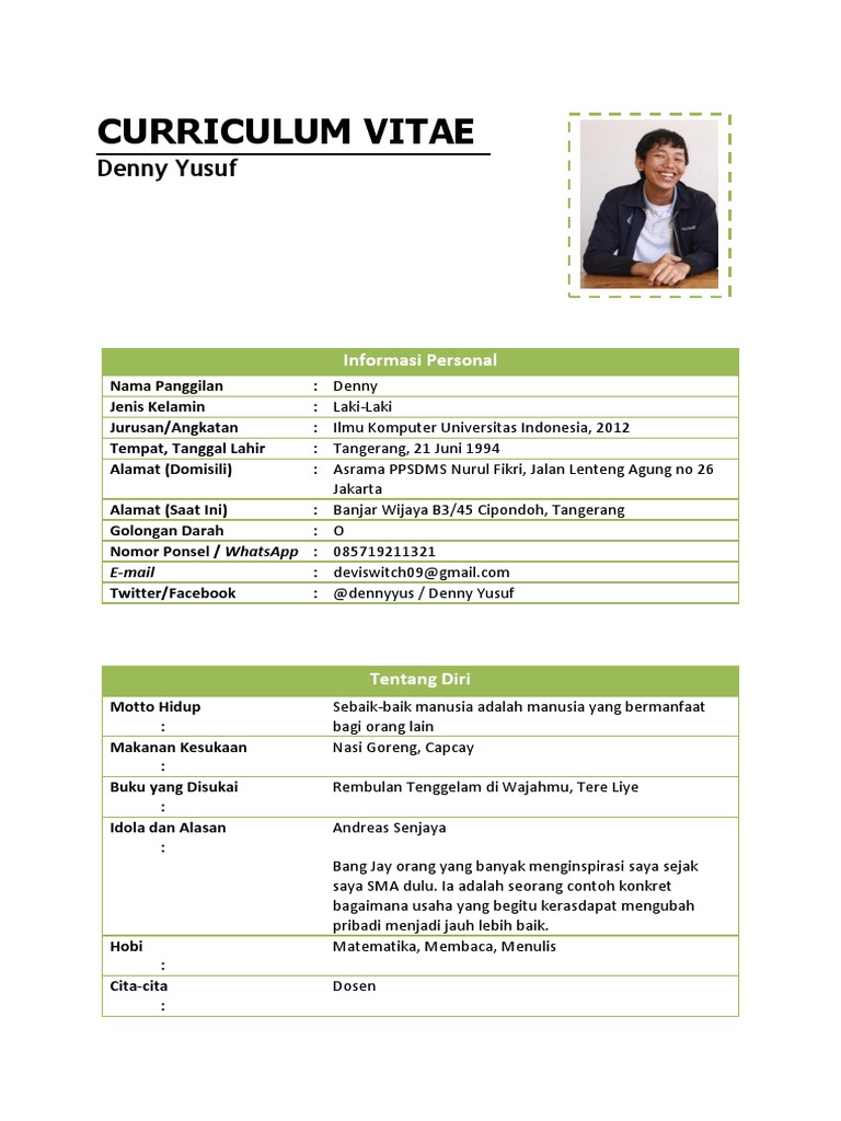 Contoh Curriculum Vitae Untuk Melamar Jadi Dosen - Contoh Galau | Riwayat hidup, Creative cv template, Cv kreatif