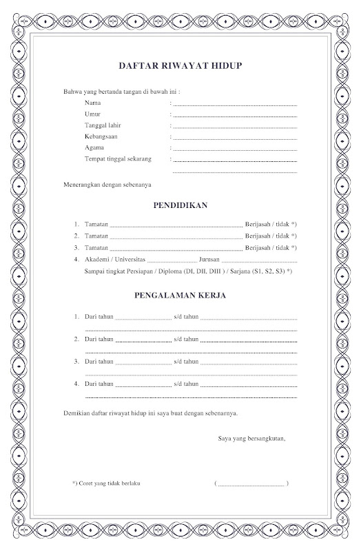 10+ Daftar Riwayat Hidup CV Kosong untuk di Tulis tangan