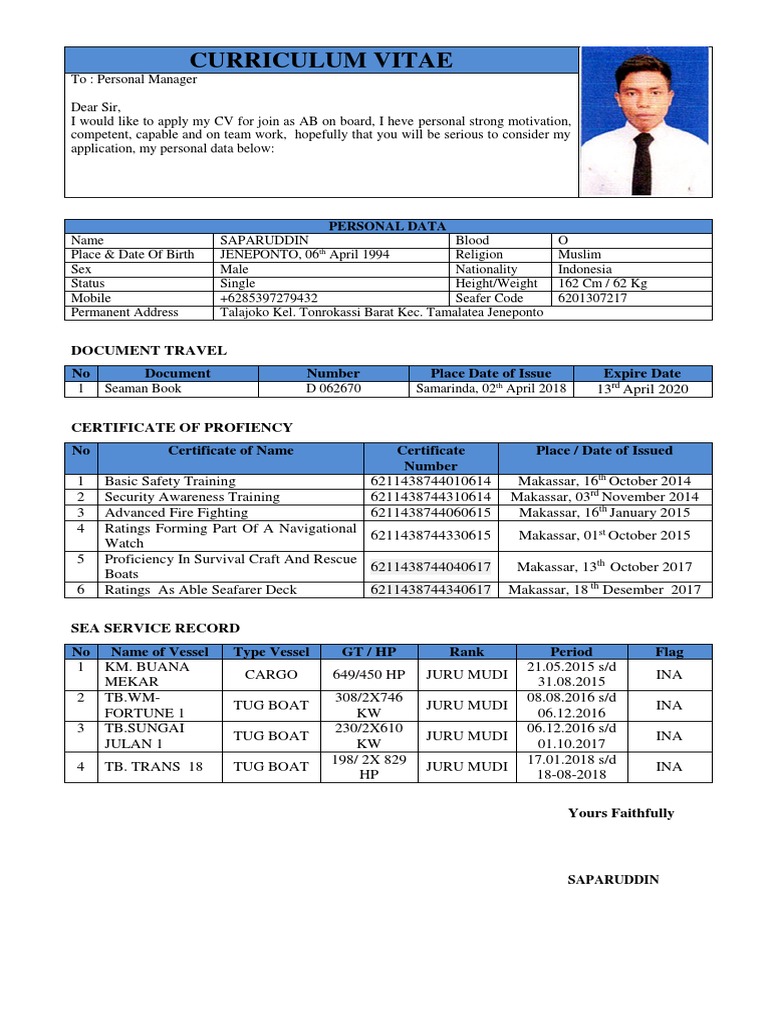 PDF) CONTOH CV PELAUT BARU KEREN | Abrar Muzayit - Academia.edu