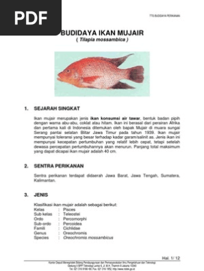 BUDIDAYA IKAN MUJAIR ( Tilapia mossambica ) 1. SEJARAH