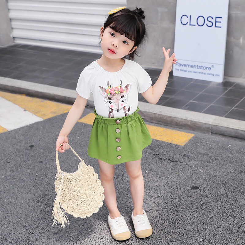Setelan Kaos T-Shirt Katun Bayi Perempuan Lengan Pendek Gambar Kartun Hewan + Rok untuk Musim Panas | Shopee Indonesia
